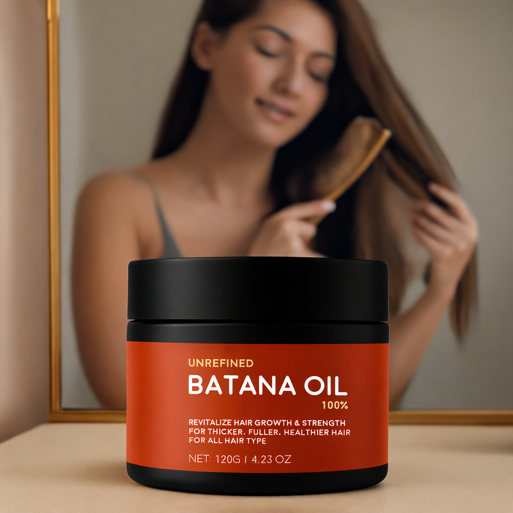 Experience healthier, fuller hair naturally with our Hair Growth Batana Oil. This nutrient-rich oil is designed to nourish your scalp, strengthen hair strands, and promote visible growth. Whether you’re dealing with thinning, breakage, or dull hair, it’s the perfect daily ritual to restore your hair’s natural shine and vitality. Lightweight, easy to apply, and suitable for all hair types — just massage it in and let it work its magic.