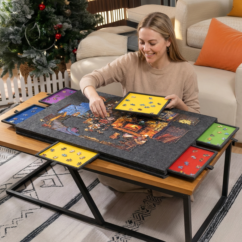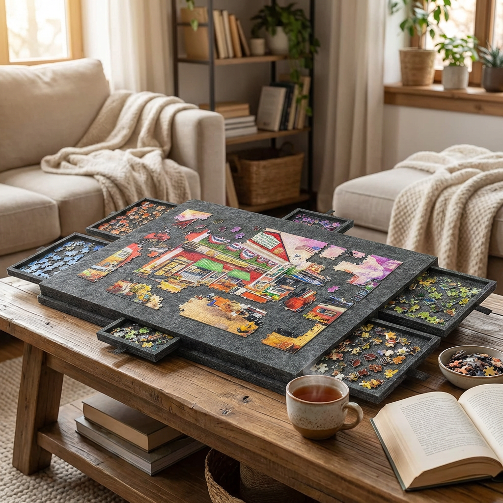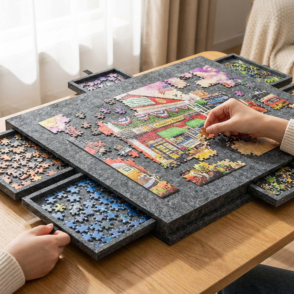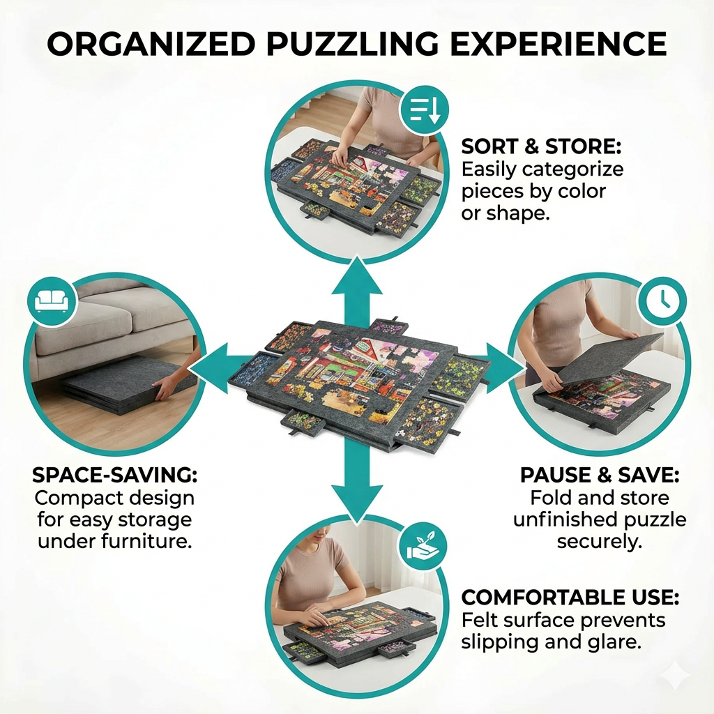 It’s easy to move, simple to store, and designed to fit into everyday life without creating clutter, so puzzling stays enjoyable from start to finish.